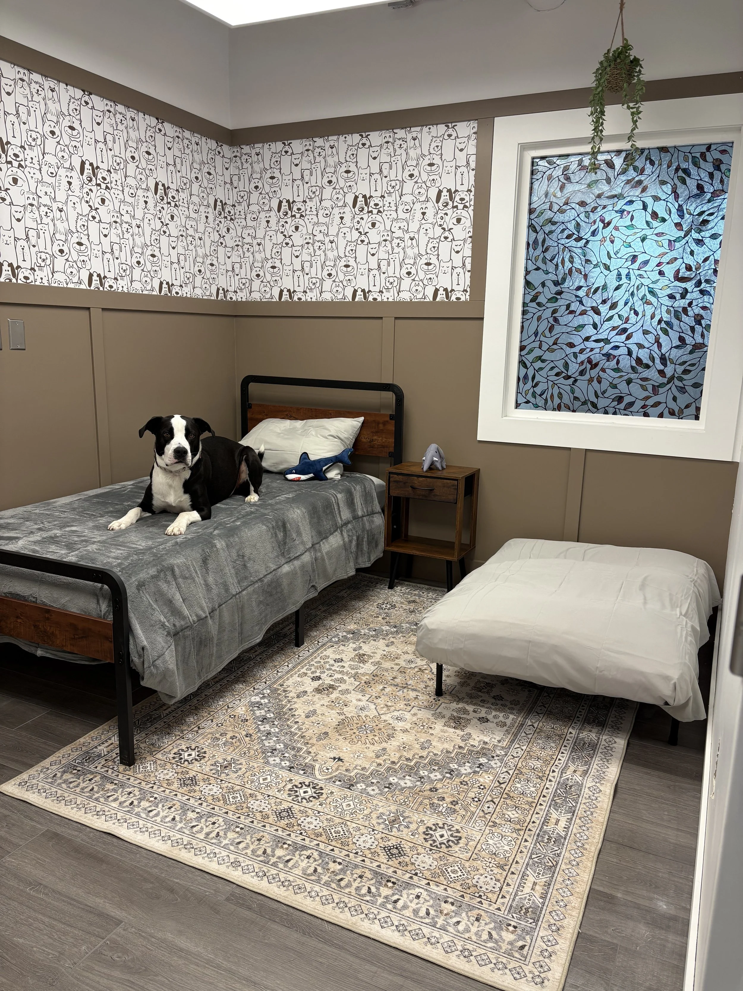 VIP Suite bookings offer a cozy, home-style environment. You’re encouraged to bring your dog’s favorite beds, blankets, toys, or other comforts—but we’re also happy to provide these items from our VIP collection to make their stay extra cozy.